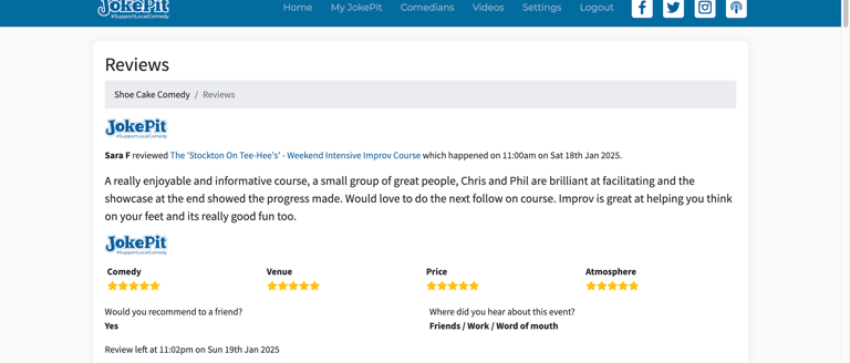 At Shoe Cake Comedy, we are passionate about fostering learning and personal growth through our specially designed comedy courses. Whether you are a newcomer stepping into the world of stand-up, aiming to check this experience off your bucket list, or simply looking to boost your confidence, public speaking skills, and stage presence, we are here to support you!
